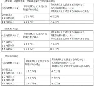 ※引用:厚生労働省:働き方改革推進支援助成金(業種別課題対応コース):https://www.mhlw.go.jp/stf/seisakunitsuite/bunya/0000120692_00001.html