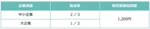 受給額は、休業を実施した場合、事業主が支払った休業手当負担額、教育訓練を実施した場合、賃金負担額の相当額に次の助成率を乗じた額です。また、教育訓練を行った場合は、1人1日あたり以下の加算があります。(ただし受給額の計算に当たっては、1人1日あたり8,635円を上限とするなど、いくつかの基準があります。)