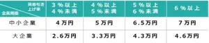 - 就業規則または労働協約に定めるところにより、増額改定した賃金規定等を適用され、かつ、増額改定前の基本給に比べて3%以上昇給している者。最賃法第14条および第19条に定める最低賃金の効力が生じた日以降に賃金規定等を増額した場合、当該最低賃金に達するまでの増額分は含めない。