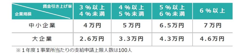3%以上の賃上げ:1人あたり 4万円〜7万円 (上げ幅に応じて金額が変動します)